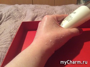Через 1-2 минуты начинать очищение медленными движениями по массажным линиям, скатывая само средство вместе с ороговевшими частичками.