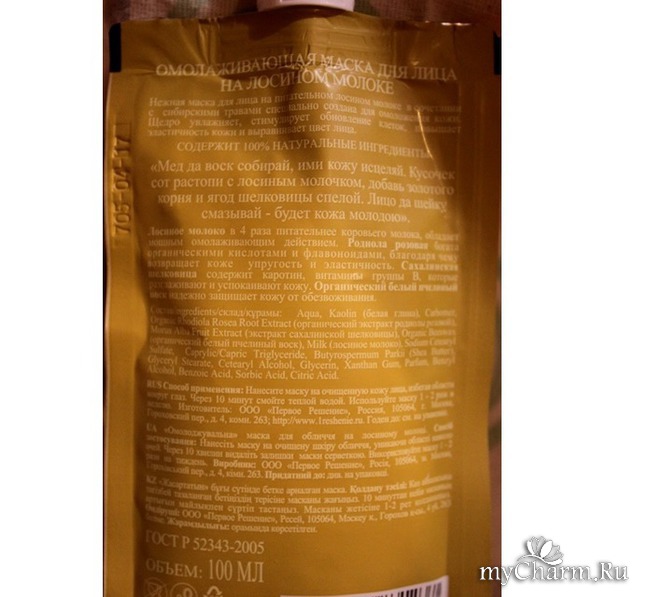 Последним моим приобретением стала Омолаживающая маска для лица на лосином молоке. Я к ней давно присматривалась, но «лосиное молоко» как-то смущало. И вот, купила месяц назад.