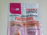 Итак, одна из программ серии Счастье для рук - это "Питание", в которую входят скраб-гоммаж и питательная маска. Каждое средство находится в отдельном пакетике, они скреплены между собой. Два средства - два этапа ухода за кожей.