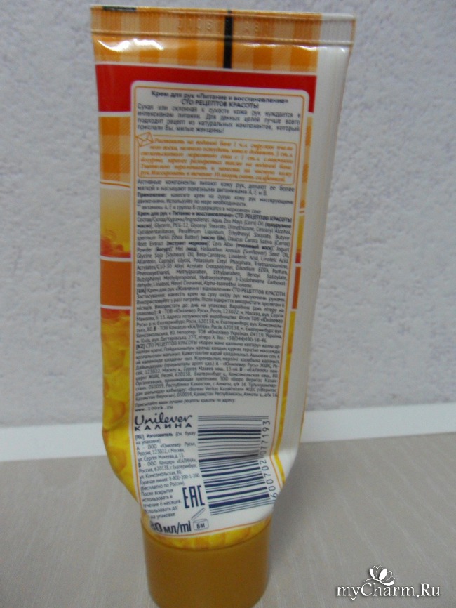 Кремы для рук я меняю часто, но есть из них те, к которым возвращаюсь снова и снова. Одним из таких является крем для рук «Питание с пчелиным воском» марки «Сто рецептов красоты». Я открыла его для себя в прошлом году зимой, когда в продаже не нашла своего «универсального солдата», о котором писала недавно: https://www.mycharm.ru/kosmetika/obzory/universalnyj-soldat-krem-nog/