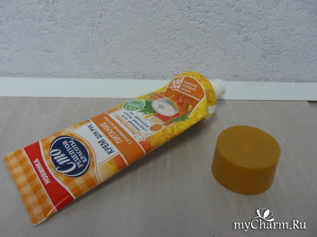 Тюбик самый обычный для марки «Сто рецептов красоты», особо останавливаться на его описании не стану. Активные компоненты крема – пчелиный воск, сливочный йогурт и морковный сок. Отмечено, что они натуральны на 100%. О пользе пчелиного воска я слышала очень много, его часто используют для восстановления кожных покровов и их насыщения питательными веществами. Из-за этого я и обратила свое внимание на этот крем.