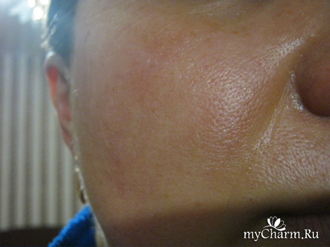 При нанесении на кожу и впитывании есть какая-то двойственность восприятия. Часть крема очень быстро впитывается и, например массаж при нанесении вы сделать не успеете. Но впитывается крем не полностью. Другая его часть остается блестящей и липковатой пленочкой на лице, которая постепенно тоже впитывается, но уж очень долго – через полчаса эффект «масляного блинчика» с лица еще не сходит. Следует отметить, что данная "пленочка" имеет легкую структуру и почти не чувствуется на коже.