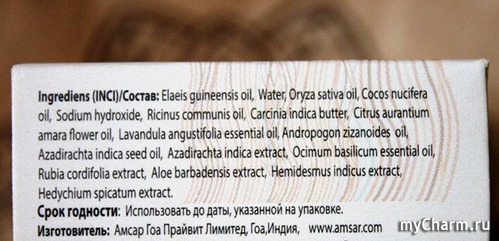 Список масел и экстрактов просто потрясающий! Да и аромат, скажу я вам, удивительно яркий и сбалансированный. Ванная наполняется «индийскими» растительными мотивами, и атмосфера меняет в одно мгновение. С каждым вдохом снимается напряжение, волнения уходят прочь и… можно приступать к процедурам. Достаточно намылить лицо и тело, затем смыть теплой водой, чтобы ощутить очищение и уход. Мыло не сушит, не стягивает. Кожа абсолютно комфортная и приятная на ощупь. Нотки Востока еще некоторое время сопровождают ваше тело, придавая особенный шарм.