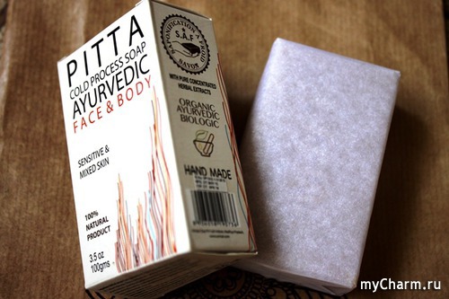 Pitta создано для чувствительной комбированной кожи, склонной к воспалениям и раздражениям. В его составе множество растительных активных компонентов: масло рисовых отрубей дарит питание, увлажнение и активизирует регенерацию клеток эпидермиса; кокосовое масло благодаря содержанию жирных кислот быстро впитывается в кожу, смягчая её и разглаживая, оказывает противовоспалительное и антимикробное действие; пальмовое масло улучшает мыльные способности средства и помогает коже бороться с шелушением и раздражениями; масло гарцинии благодаря витамину С, бета-кератину и фруктовым кислотам предупреждает сухость и появление первых морщинок, повышает тонус сосудов и эластичность кожи; масло цветков апельсина своим нежным цветочно-фруктовым ароматом создает спокойствие и безмятежность в душе, снимает покраснения на коже, улучшает состояние пор и омолаживает; эфирное масло лаванды также снимает напряжение и головные боли, способствует заживлению, устранению воспалений и помогает при лечении акне, регулирует выработку себума; эфирное масло ветивера хорошо очищает кожу, устраняя застойные воспалительные процессы, заживляет порезы и ранки, улучшает обменные процессы и кровоток и тем самым усиливает регенерацию клеток; масло ним за счет множества кислот, витаминов, природным антибиотиков и других веществ активно воздействует на кожу, оказывая антисептическое и защитное действие, лечит угревые высыпания и экземы, увлажняет и питает; экстракт манджишты снимает отечность, отбеливает кожу, тонизирует и освежает; экстракт алоэ известен как хороший увлажнитель и антисептик.