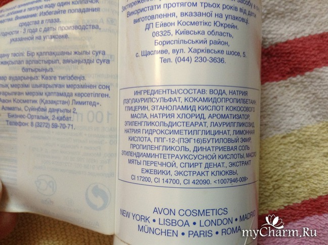 Как меня радует, когда состав указан на русском языке, как на этом средстве. Давайте посмотрим, что там положили. Вода – основа средства. Далее натрия (ПЭГ) лаурилсульфат – не очень хороший компонент, именно тот самый SLS, который вызывает аллергию, но не является канцерогеном. Здесь он для того, чтоб средство хорошо очищало, для пенообразования. Этаноламид кислот кокосового масла – смягчитель, лимонная кислота идет как консервант, ароматизаторы мы знаем по названию какие.Ладно хоть масло мяты перечной положили натуральное, ее запах в средстве отчетливо слышится даже когда средство не открыто, а стоит рядом со мной. Мята придает свежесть не только в виде запаха, но и освежает и охлаждает кожу ног, что особенно приятно, когда ноги уставшие и «горят».