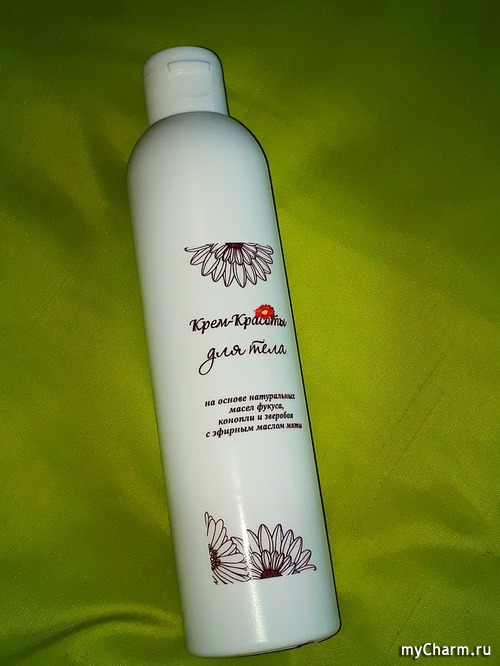 Как я уже сказала, сегодня я хочу побаловать тело с компанией Крем Красоты. Представляю вам «Крем для тела на основе натуральных масел фукуса, конопли и зверобоя с эфирным маслом мяты».