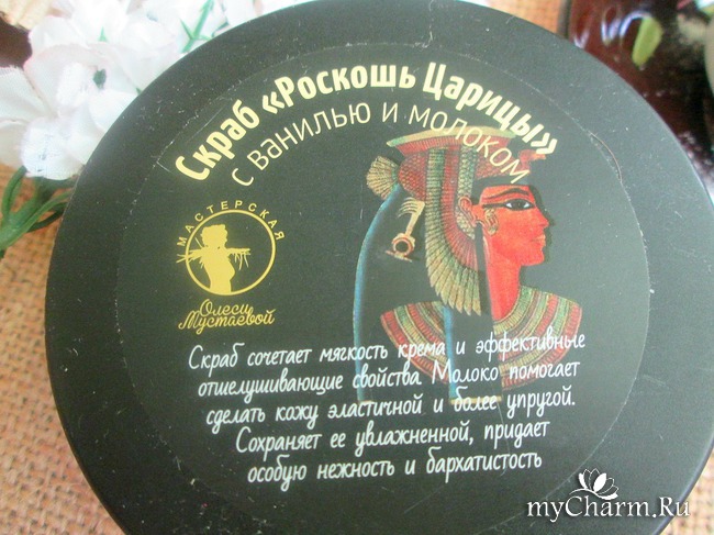 И вот на замену предыдущему я обзавелась натуральным сахарным скрабом от Мастерской Олеси Мустаевой с привлекательным названием "Роскошь Царицы".