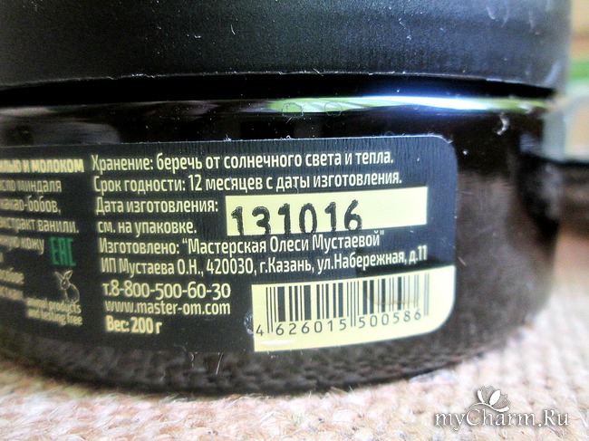 И раз уж речь зашла о производителе, то чуть остановимся здесь. Изготовлено - "Мастерская Олеси Мустаевой". А производится эта чудная косметика в Казани.