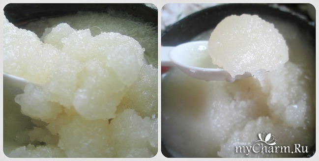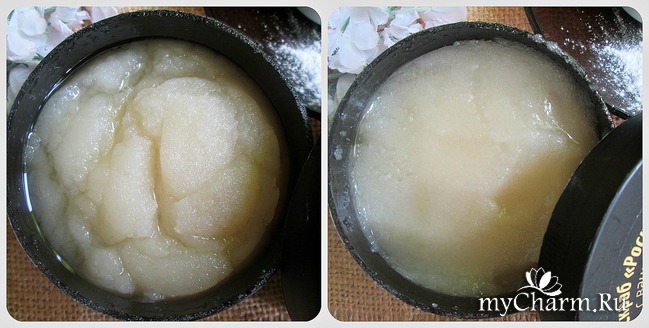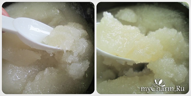 Консистенция, как вы видите, сахарная, что неудивительно, ведь основу этого скраба составляет сахар. И первой аналогией, возникшей у меня, стало сравнение этого скраба с другим натуральным скрабом от Nonicare. О нем я рассказывала здесь.
