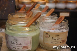 Когда я пришла в магазин, то глаза разбегались, потому что выбора было так много... Столько разных видов скраба... и мускус, и ванилька с лавандой, и мята с лимоном, и деликатный жасмин, и киви с манго, и кокос с ванилькой, и тропические фрукты, и даже два вида для мужчин: с цитрусами и другой тоже с цитрусами плюс с сандаловым деревом и розой. Так что для мужчин, которые тоже любят себя поскрабировать... смешно звучит...:) можно тоже кое что подобрать ;) Хотя мой муж пользуется тем, чем и я :)