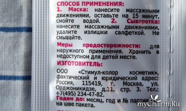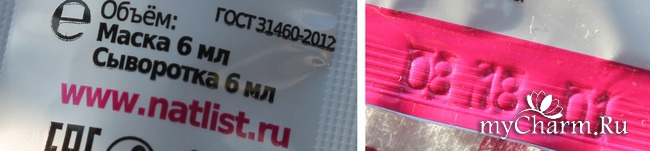 Что еще можно увидеть на пакетике? Пожалуй, еще вот такую информацию: сайт, объем - по 6 мл каждого средства, срок годности..
