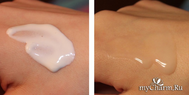 Этот продукт оказался больше похож на мои ожидания - сыворотка легкая, почти прозрачная. Пока я хватала в руку фотоаппарат, даже чуть не утекла. Кстати, она имеет такой же приятный виноградный аромат. При нанесении впитывается достаточно быстро, а потому я не убирала излишки салфеткой, как указано в инструкции.