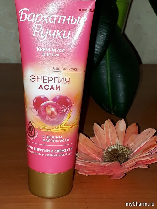 А сегодня я расскажу вам о средстве для ручек от бренда Бархатные ручки под названием Крем-мусс Энергия асаи.