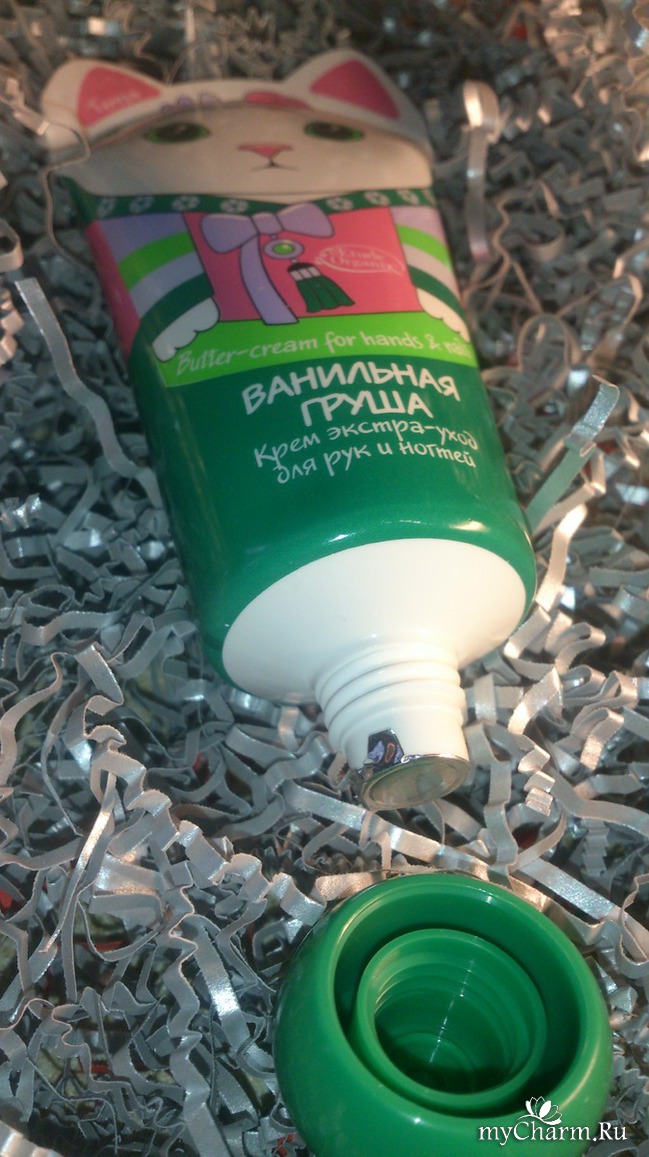 Сам крем по консистенции не очень густой и не жидкий, легко выходит нужное количество из отверстия при надавливании на тубу. Имеет белый цвет и приятный аромат натуральной груши с легкими нотками ванили. Это, как полезный и вкусный десерт для кожи рук и ногтей. Очень нежная текстура покрывает кожу и впитывается без ощущения липкости. Не оставляет жирных следов и не образует пленку. Кожа становится увлажненная, гладенькая и на ощупь шелковистая. Кстати, не только кожа рук, но и мои ноготки получили порцию полезностей. Ведь ногтям тоже необходимо увлажнение и питание для их роста и прочности. О его пользе говорит состав, в который входят только натуральные и полезные компоненты, в числе которых масло ши, гидролизованный растительный протеин, гиалуроновая кислота, пантенол, аллантоин, витамин А и витамин Е.