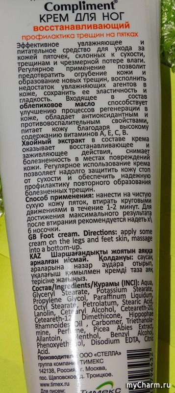 Итак, Профилактика трещин на пятках крем для ног Восстанавливающий от бренда Compliment.
