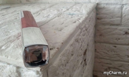 Упаковка выполнена из толстого прозрачного пластика, можно хорошо рассмотреть оттенок. Крышечка из серебряного пластика, которую венчает прозрачный кристалл.