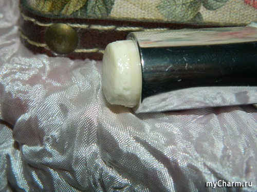 Стик белого цвета с приятным ароматом какао. Аромат настолько манящий, что хочется, если и не куснуть, то хотя бы лизнуть помаду. Однако делать этого всё же не стоит – лучше пользоваться помадой по назначению.