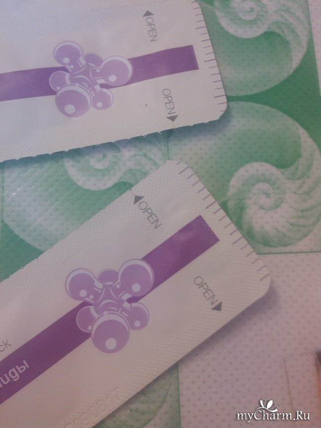 Каждая ампула легко отделяется от общего пакетика-саше с помощью нанесенной перфорации. Так же на каждом отсеке есть риска, с помощью которой открывается ампула. Видим там надпись open.