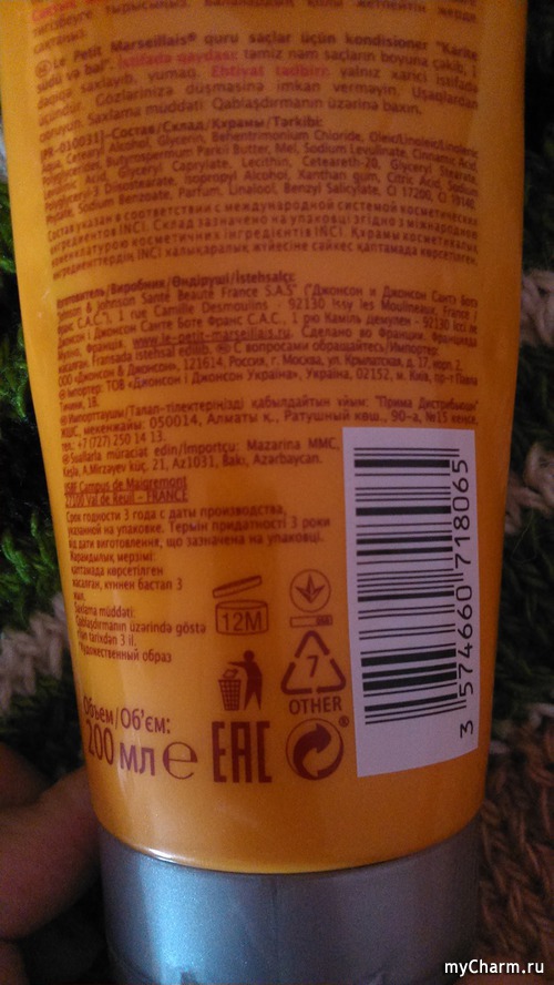 На упаковке, которая, кстати, очень удобна, указано, что кондиционер предназначен для сухих, поврежденных и ломких волос. Как раз то, что нужно для меня.