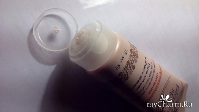Консистенция - кремовая, в меру густая. Напоминает по ощущениям жирный крем. Липкости нет. Легко распределяется и на шее, и на зоне декольте. Не скатывается. При засыхании слегка стягивает кожу. Во время применения стараюсь не мотать головой, как сова, а спокойно посидеть, чуть откинув голову назад.