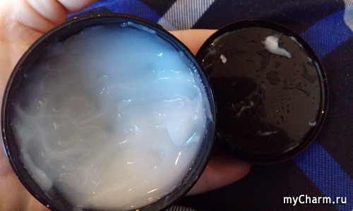 Консистенция у крема «Танцы на льду» не жидкая, кремовая. Цвет прозрачно-белый. Иногда, в сочетании с чёрной баночкой, мне даже кажется, что он голубоватый.