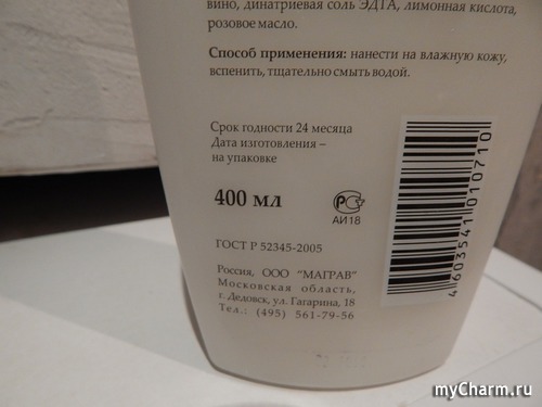 Производитель отмечает, что эти составляющие (розовое масло и виноградное натуральное вино) поддерживают кожу в тонусе и предотвращают ее старение.