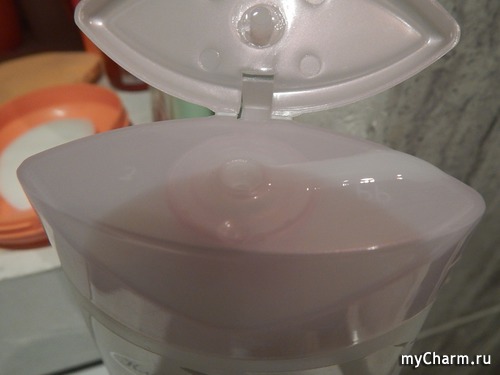 Гель-душ содержится в пластиковом флаконе молочного цвета с нежно-розовой крышкой, которая легко открывается и закрывается.