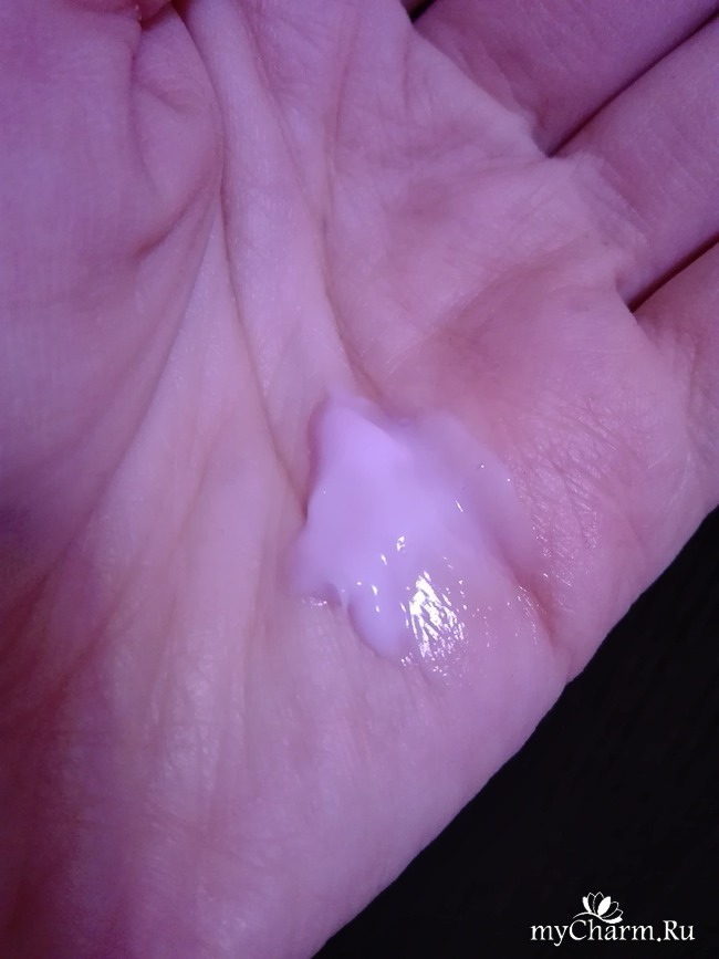 Как будто я держу крем для торта. На ночь на хорошо очищенную кожу наношу крем, хорошо и ровно ложится и тонким слоем распределяется по лицу. При нанесении не скатывается, кожа не остается липкой. Лицо очень приятное на ощупь, как шелк, никакой пленки не остается. Немного стягиваются поры и выравнивается тон кожи.