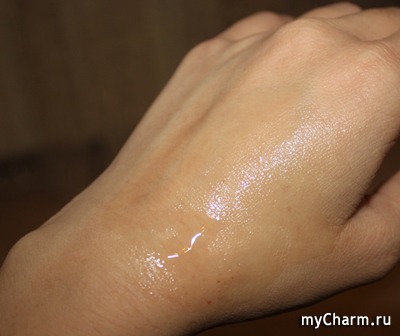 Флакон сыворотки белый с сиреневым оформлением. Дозатор плотный и удобный, т. е. можно нажать лишь наполовину и выдавить маленькую каплю средства. Это удобно и практично, поскольку расход очень маленький. Сыворотка представляет из себя прозрачный жидкий гель с едва уловимым зеленоватым оттенком. Обладает очень приятным нежным цветочным ароматом. Я поначалу просто не могла оторваться.