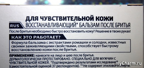 Кстати, по следам некоторых отзывов в интернет пространстве, я решила и сама воспользоваться этим бальзамом. Оказывается, он отлично помогает справляться с раздражением после эпиляции и депиляции на ножках. А если у вас такая чувствительная кожа, что и бритье кажется пыткой, то тем более попробуйте это средство. Ощущения приятные, а аромат очень быстро перестанет напоминать о своем «мужском» происхождении.