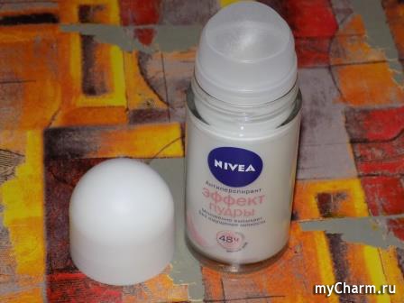 И вот, наконец, мы подошли к самому главному - использованию роликового дезодоранта-антиперспиранта Эффект пудры от бренда NIVEA.