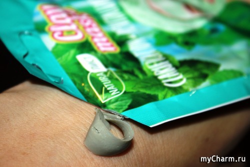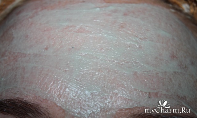 Консистенция маски кремообразная, цвет серо-зеленый. Наносится состав достаточно просто, хорошо размазывается по поверхности, образуя плотный слой даже при экономном использовании. Во время выдержки (порядка 15 минут) не следует активничать. Отдохните, не разговария и не напрягая мышцы лица. Маска подсыхает, превращаясь в «корочку». Первые несколько минут могут ощущаться покалывание и пощипывание, и это совершенно нормально. Производитель заботливо предупреждает об этом в описании.
