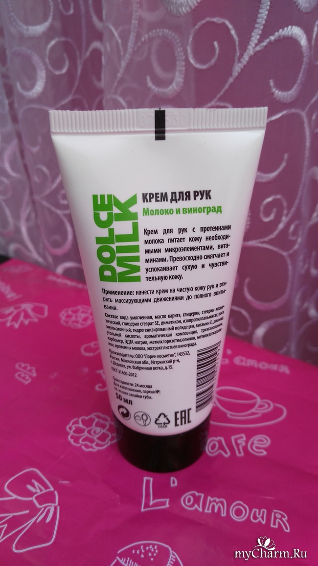В этот раз хотелось бы поделиться впечатлениями от крема для рук "Молоко и виноград" от Dolce Milk.