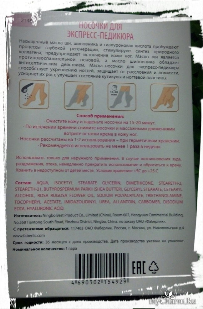 Конечно этот результат получен не только вследствие эффективности именно этих носочков, а ещё и всевозможных процедур и усилий, направленных на ножки, но Носочки для экспресс-педикюра от Faberlic очень облегчают уход и действительно дарят ножкам увлажнение, питание и ухоженный вид.