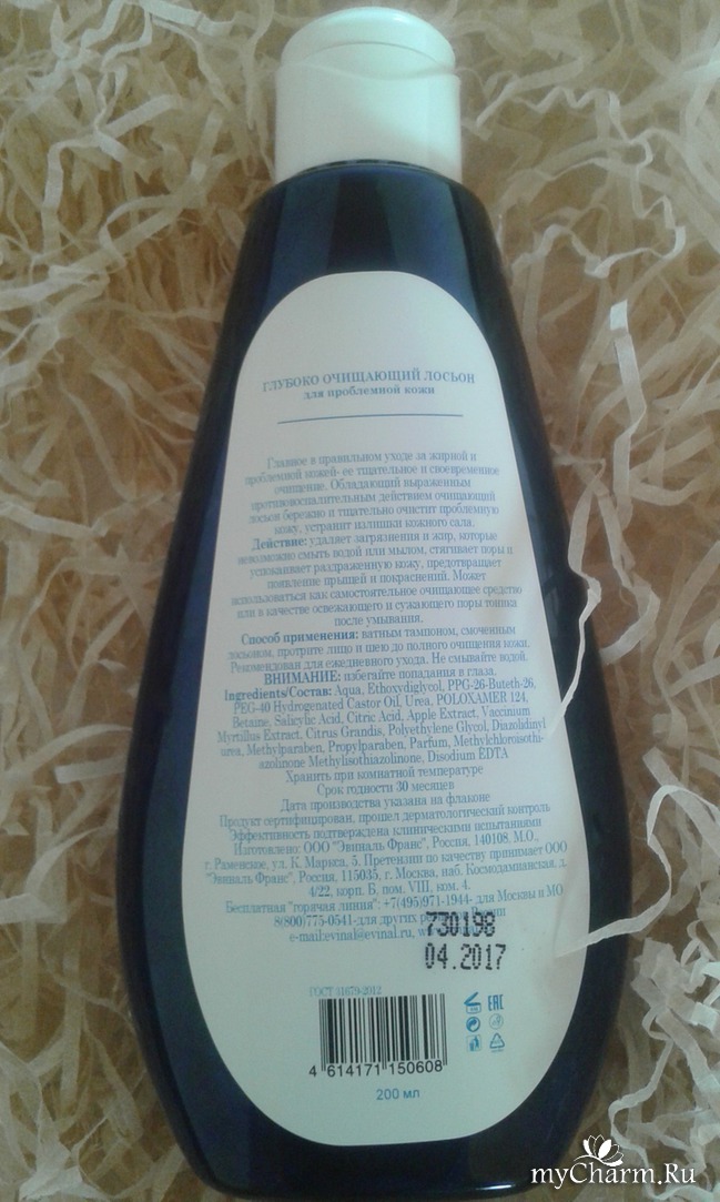 И все эти пункты - заслуга данного Глубоко очищающего лосьона от Evinal! Кажется я нашла средство, которое идеально справляется с моей жирной кожей, и полностью выполняет все заявленные обещания! Здоровая кожа, как и говорилось, действительно вернула мне улыбку)