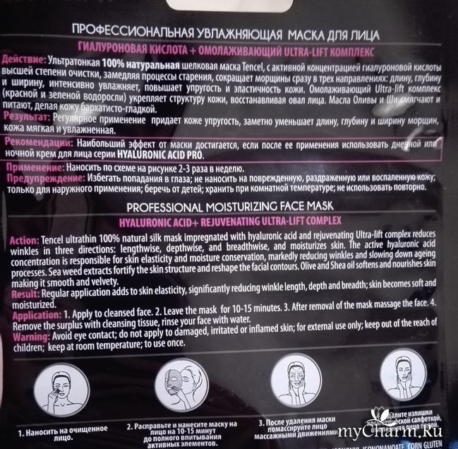 Первой я использовала Профессиональную увлажняющую маску для лица Гиалуроновая кислота + омолаживающий Ultra-lift комплекс Vilenta.
