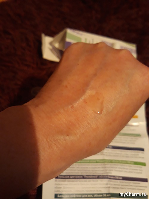 Бальзам желтого цвета, маслянистой консистенции. Легким нажатием получаем парочку капель и аккуратно обрабатываем носогубный треугольник.