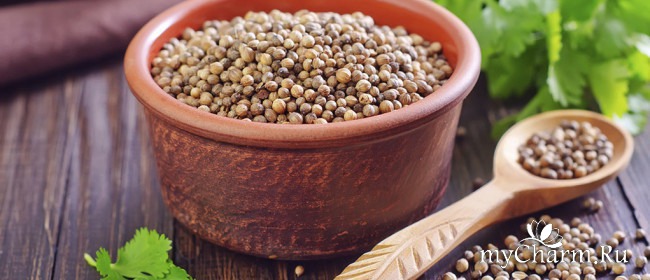 Популярно также эфирное масло кориандра. Оно используется и в парфюмерии, и в мыловарении, ароматерапии (оно помогает расслабиться, снять стресс и усталость), лечении (для изготовления средств лечения таких глазных заболеваний, как глаукома и конъюнктивит) и т. д. и т. п.