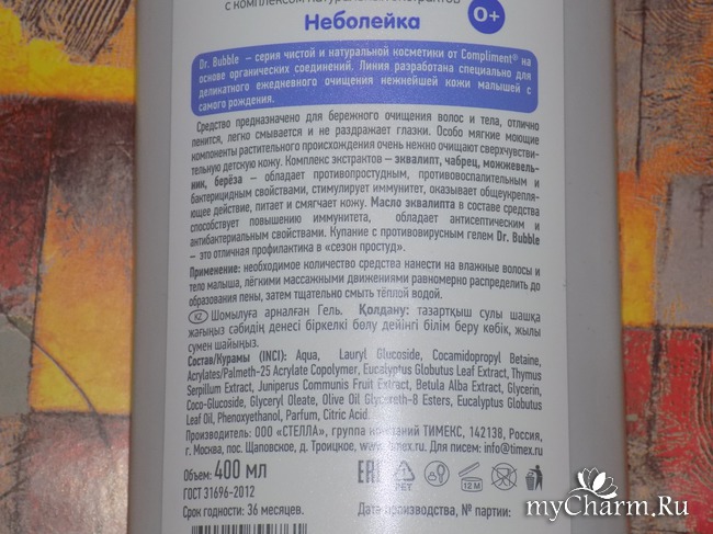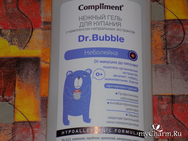 Подскажу, чтобы вы были в курсе, что Dr. Bubble – серия чистой и натуральной косметики в Compliment. Создана на основе органических соединений. Средства разработаны специально для регулярного (ежедневного) очищения нежной кожи малыша с самого его рождения. И еще немного комплиментов бренду «Комплимент»))). Люблю его за приятные ароматы косметических средств, за их полнейшую эффективность, за небольшую цену, за безопасность их состава и за его богатство в виде натуральных экстрактов растений, натуральных эфирных масел.