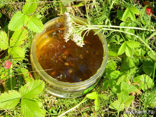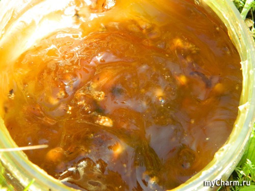 Как видите, бельди густое, желеобразное, янтарного цвета с видимыми включениями – это измельчённые листья и соцветия тысячелистника. Аромат – головокружительный: так могут пахнуть только лесные травы!