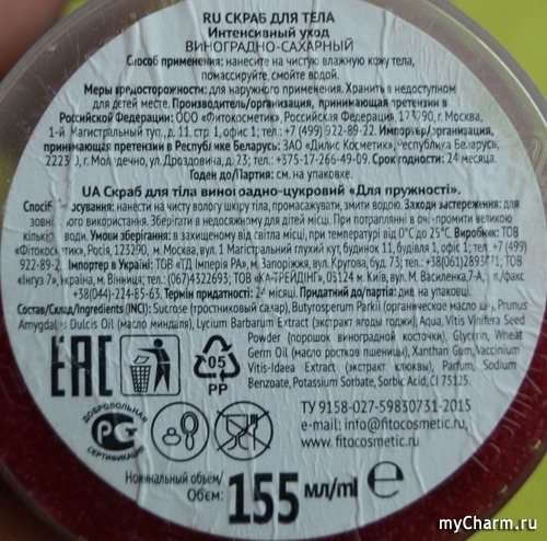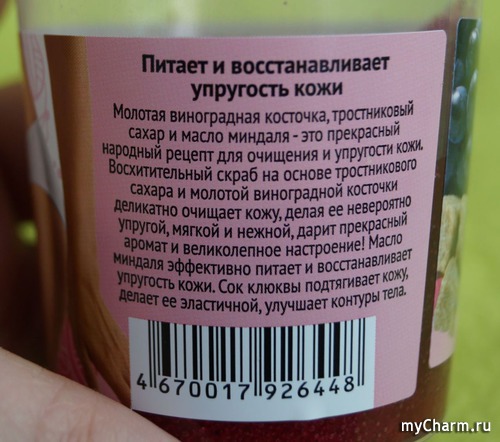 - молотые косточки винограда, которые будут бережно очищать, шлифовать и питать своими полезностями все тело.