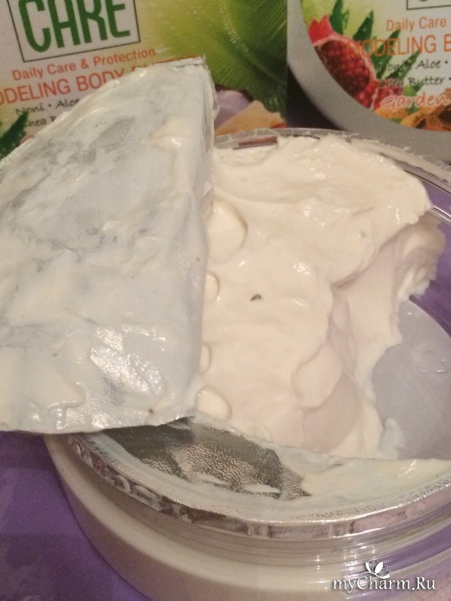 Консистенция мне больше напоминает белый крем, нежели масло. Что его роднит именно с маслом, так это то, что средство имеет жирность, но небольшую. На самом деле мазаться им одно большое удовольствие! Отдельно скажу про запах! Лично я от него нахожусь в экстазе!!! Настолько аромат вкусный, что в моей голове появляются такие мысли, чтобы намазать его на что-нибудь и скушать, либо прямо из банки!!! Повышенное слюноотделение обеспечено на 100%.