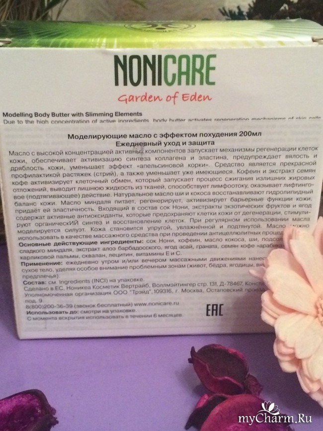 Сегодня я хочу уделить особенное внимание Моделирующему маслу с эффектом похудения от NONICARE. Серия Garden of Eden. Одна из моих любимейших фирм, даже не знаю, как выразить восторг!