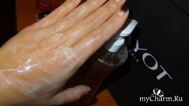 Консистенция продукта в точности напоминает масло, оно обволакивает кожу, нежно очищая ее.