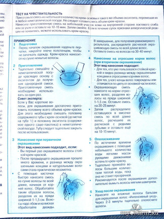 Краска доступная, поэтому никаких мисочек и кисточек не предусмотрено. Где уж та обещанная легкость применения? Пришлось искать свой контейнер, палочку для приготовления краски и кисточку. Но я не жалуюсь - скорее всего, это издержки низкой цены.Вся процедура ничем не отличается от самой обычной, знакомой миллионам женщинам в мире.