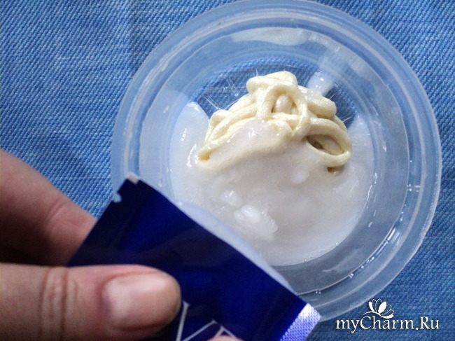 Готовлю все по инструкции.Состав получается густым. С одной стороны, это хорошо, потому что не будет течь на одежду и кожу. Но с другой стороны, он ведь должен хорошо распределиться по волосам и пропитать их. А такой густой просто ляжет сверху волоса и не сможет в него проникнуть.