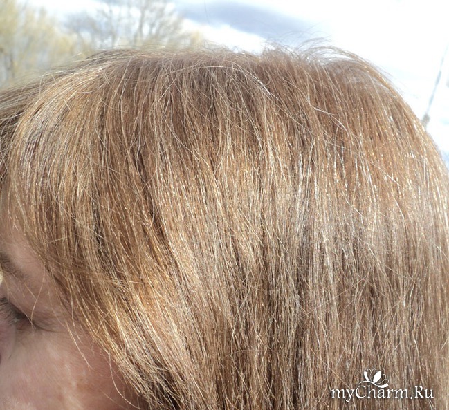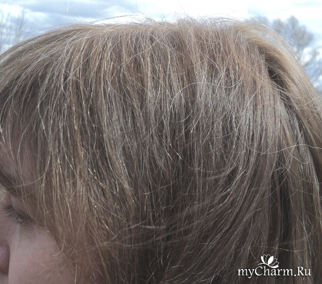 У меня были русые волосы, и была седина. На макушке отдельные седые волоски выбивались, а на челке даже была целая белая прядь. Я обычно её маскировала, как могла, укладкой. И очень надеялась, что теперь мне не придется этого делать.Что после окрашивания? У меня остался почти свой тон волос. Это приятно, я так и хотела, потому что пока не готова к кардинальным переменам. Немного стала светлее, и рыжее. Но седина! Она осталась. На фото это явно видно. И светлый клок на челке как был, так и остался. Не удалось мне стать моложе, ярче. Снова придется маскировать все укладкой. В общем, одно расстройство и разочарование. Не получилось.