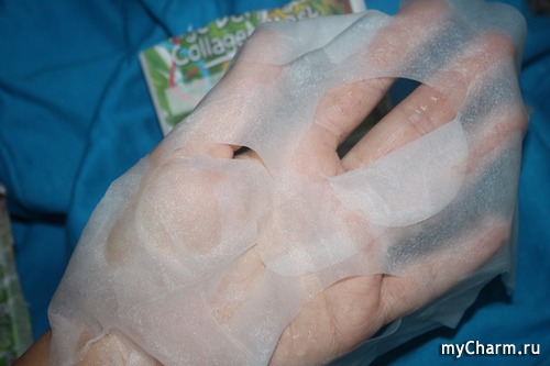Рекомендованное время выдержки маски 15-20 минут, но я гуляла все полчасика. Щедрая доза состава маски позволяет это сделать. Затем основа снимается, а излишки маски можно промокнуть салфеткой или оставить до полного впитывания.