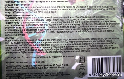 Срок годности маски- 3 года, так что шансов на то, что она затеряется в закромах косметики и просрочится практически нет. На упаковке подробно указаны меры предосторожности. Это важный пункт, с которым стоит ознакомится, чтобы не получить отрицательного эффекта для кожи.