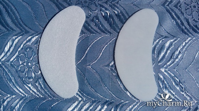 Подушечки приклеены гелиевой стороной на прозрачную пленку. С другой стороны они похожи на ощупь на ватные диски для снятия макияжа.